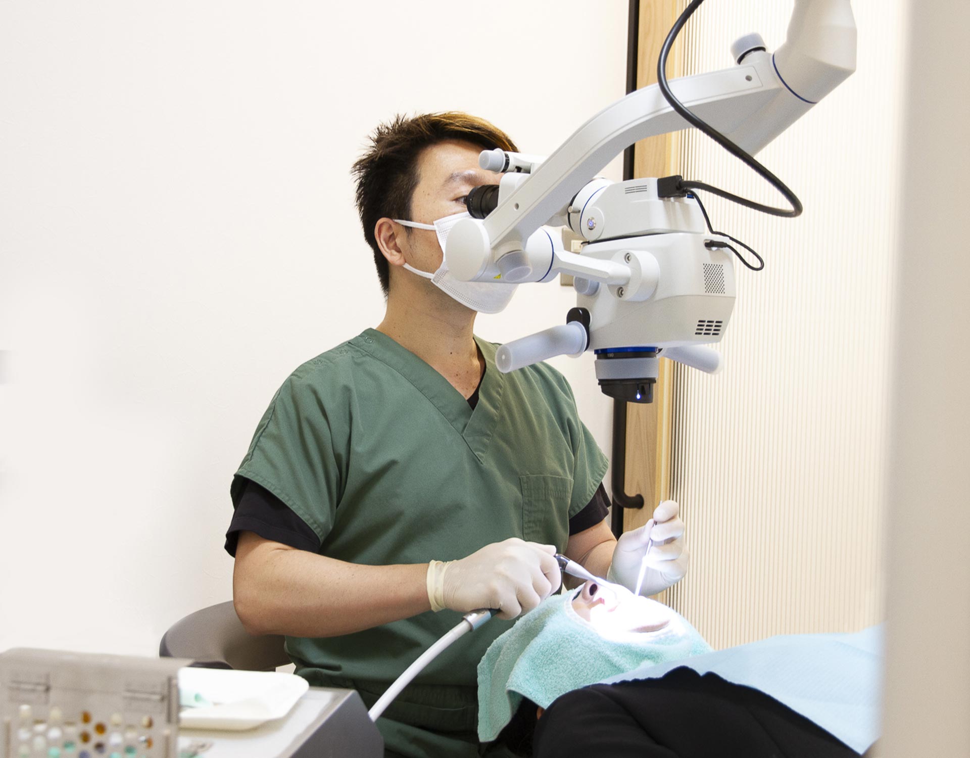 マイクロスコープによる治療は、明るく患部を照らすので、肉眼では捉えきれない部位も拡大視しながら処置できます。患者さまの歯の健康をより良い状態に保つための精密治療を提供します。