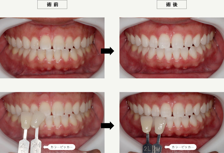白くなるのはご自身の歯のみです。神経がない歯と言っても、被せ物をしている歯やレジンと呼ばれるプラスチックの詰め物をしている部分は白くなりません。ご自身の天然の歯の表面部分が残っているというのが前提になります。