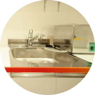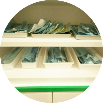 消毒室は●汚染⇒●洗浄⇒●滅菌の3色に分けられており、なおかつ一方通行の動線となっております。使用済みの器具ときれいな器具が混在しないように設計されているため、院内や器具の汚染拡大防止と治療の安全性向上につながります。